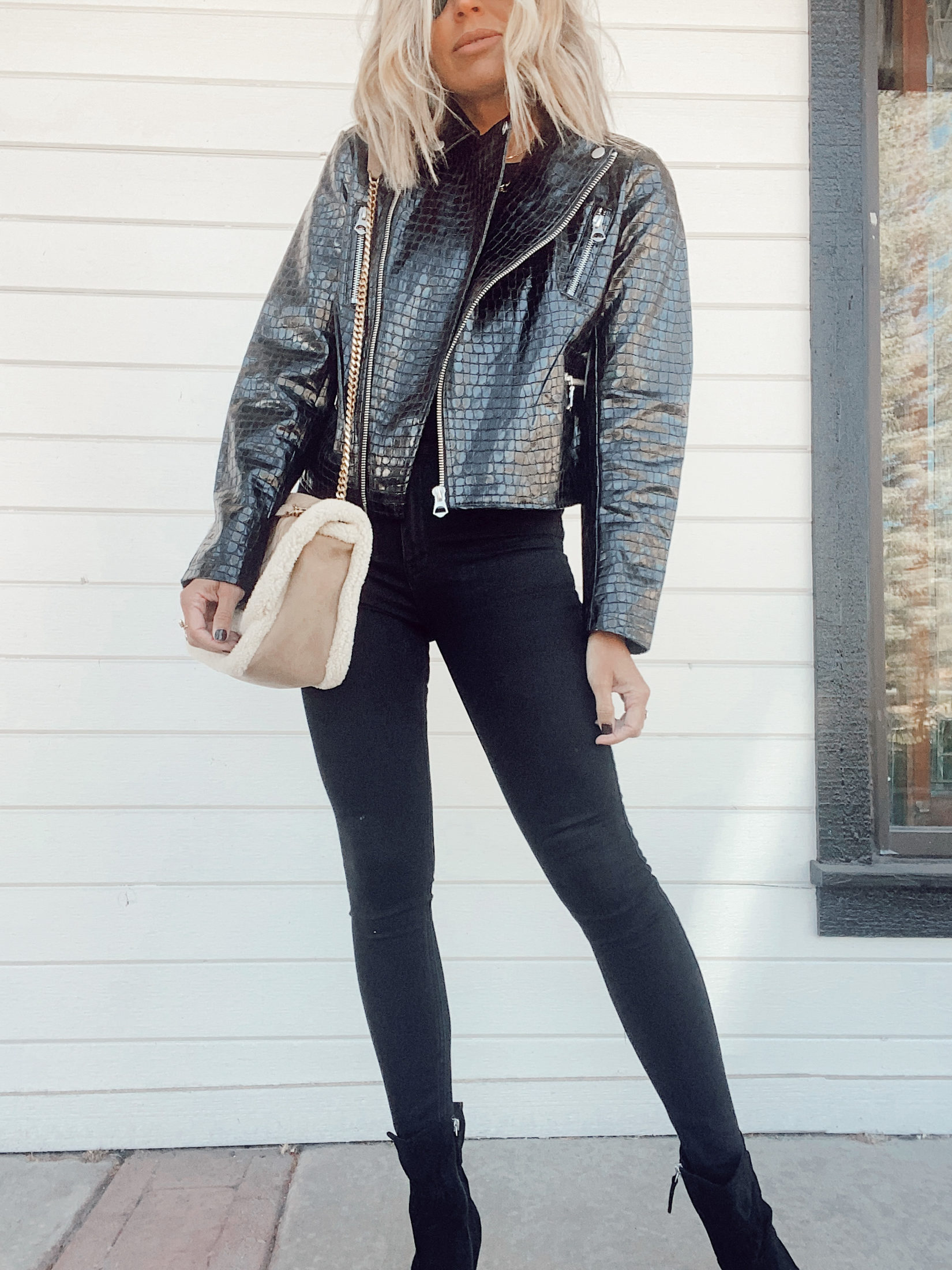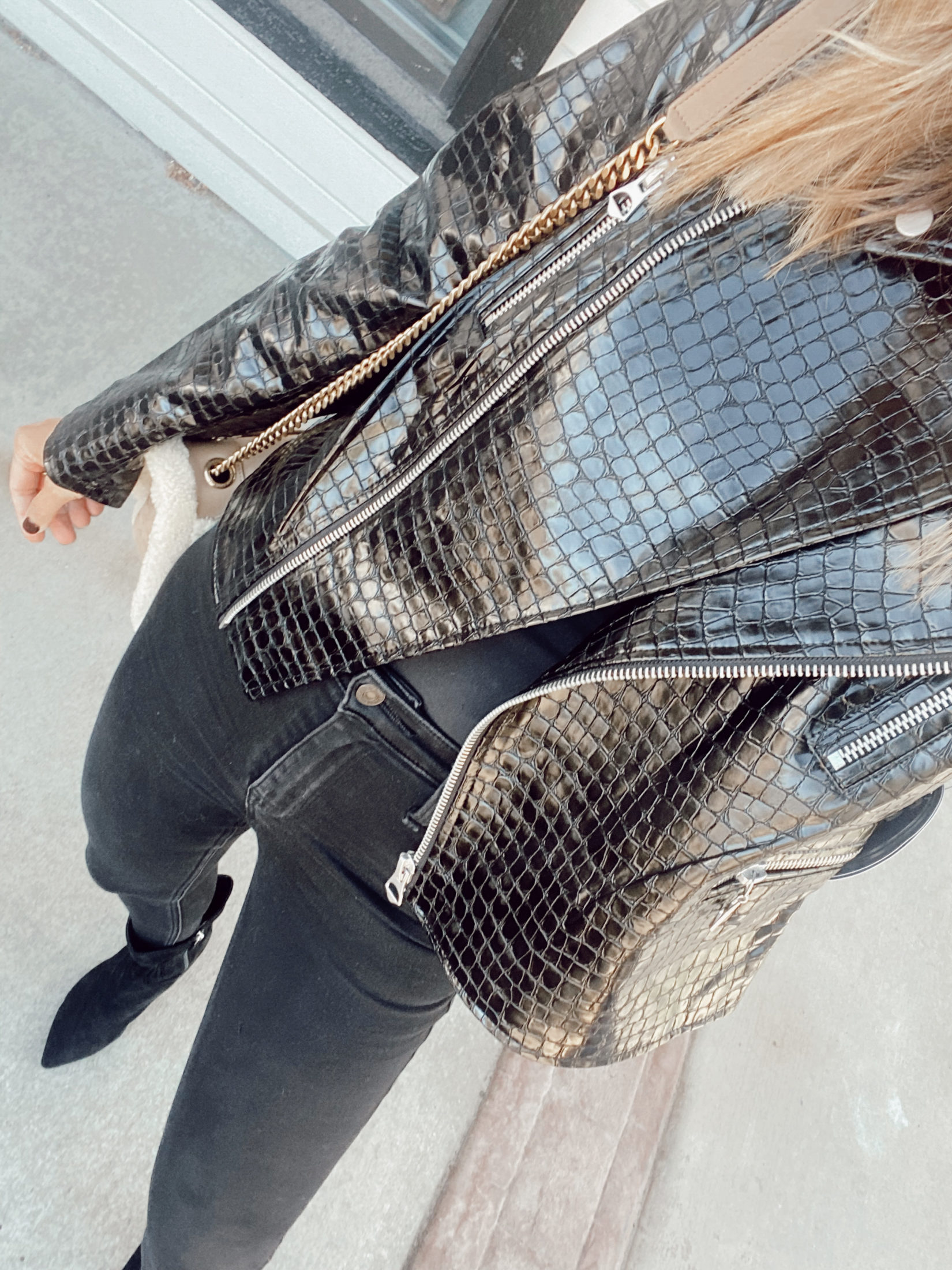 This jacket! I’m obsessed. It looks very designer but the good news is that it’s only $40! It’s so cute with jeans, but you could throw it on over a dress too. It’s the perfect piece to elevate an outfit, especially for date night. So fun! This all black look can be pulled together with other similar pieces from Walmart too.