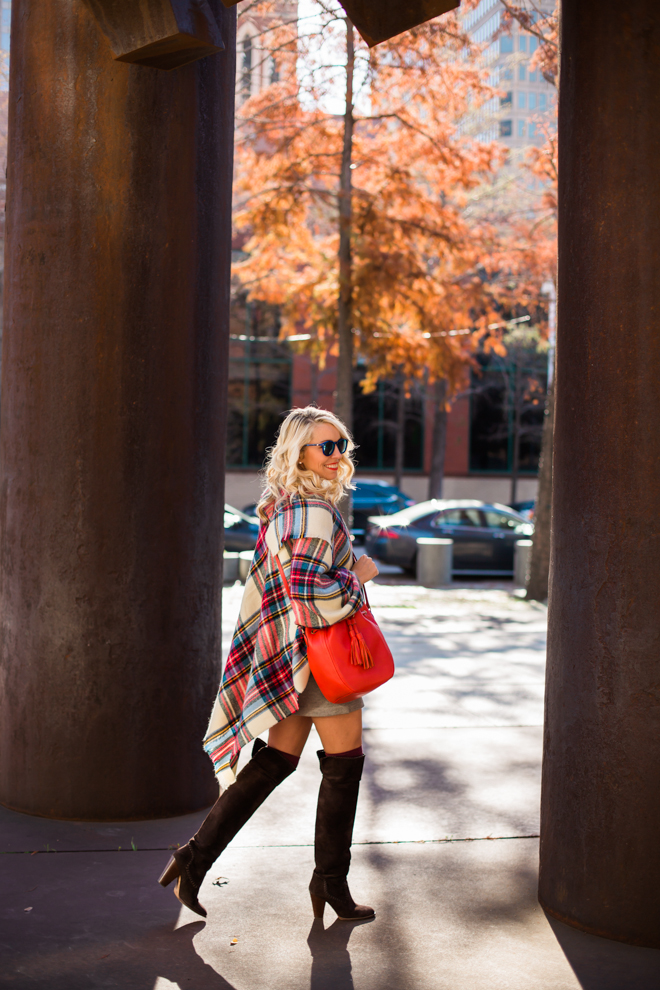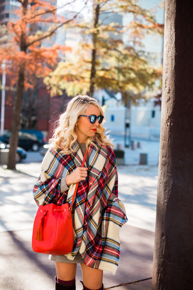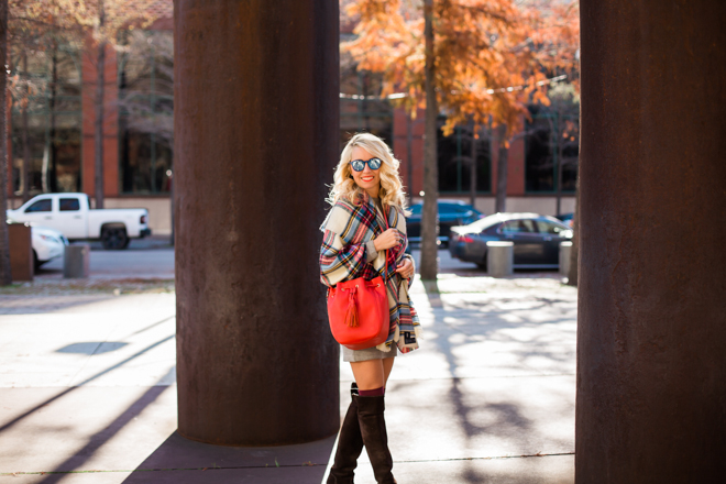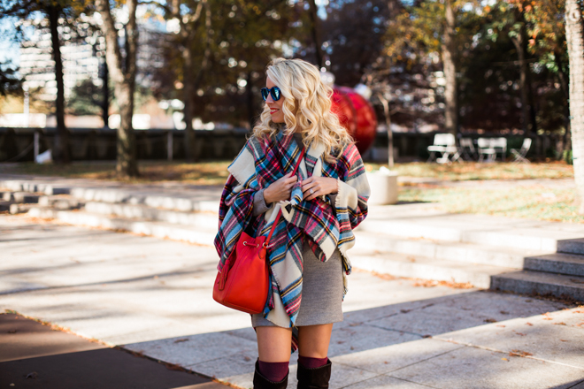 Dress: Ralph Lauren (also have this one). Scarf: ASOS (also here). Socks: Hue (similar here, here and also love these). Bag: J.Crew. Boots: Michael Kors ( 10 yrs old but similar here, here & here). Sunglasses: Le Specs.