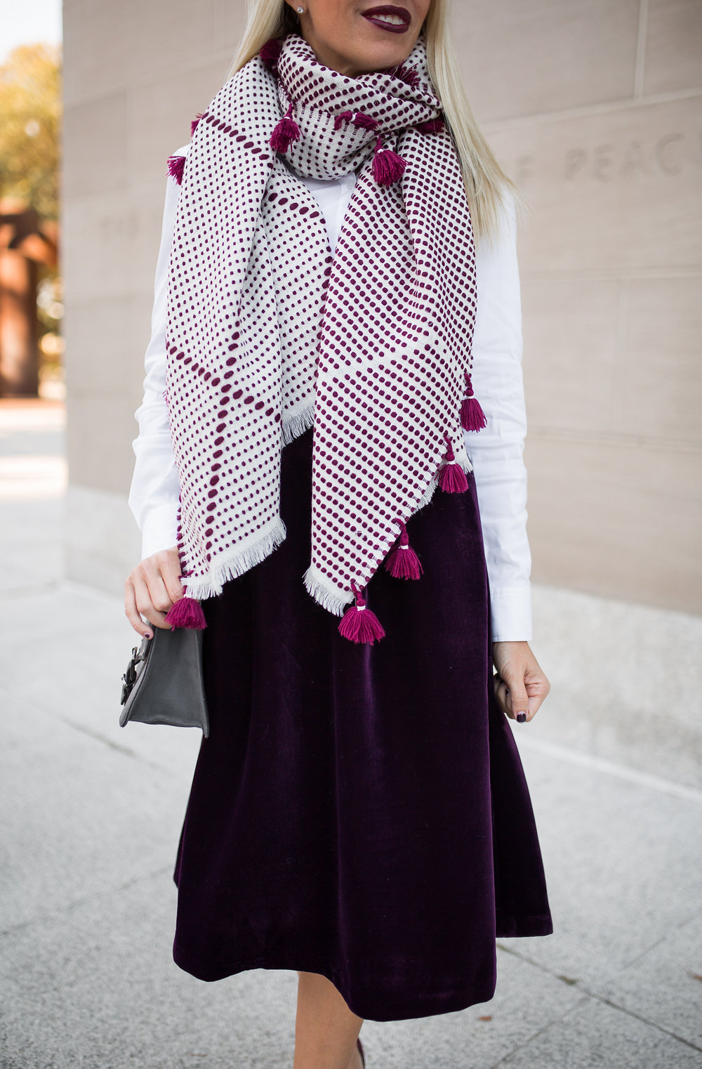 grey suede crossbody bag, velvet party skirt, velvet holiday skirt, velvet holiday party midi skirt, jaime shrayber