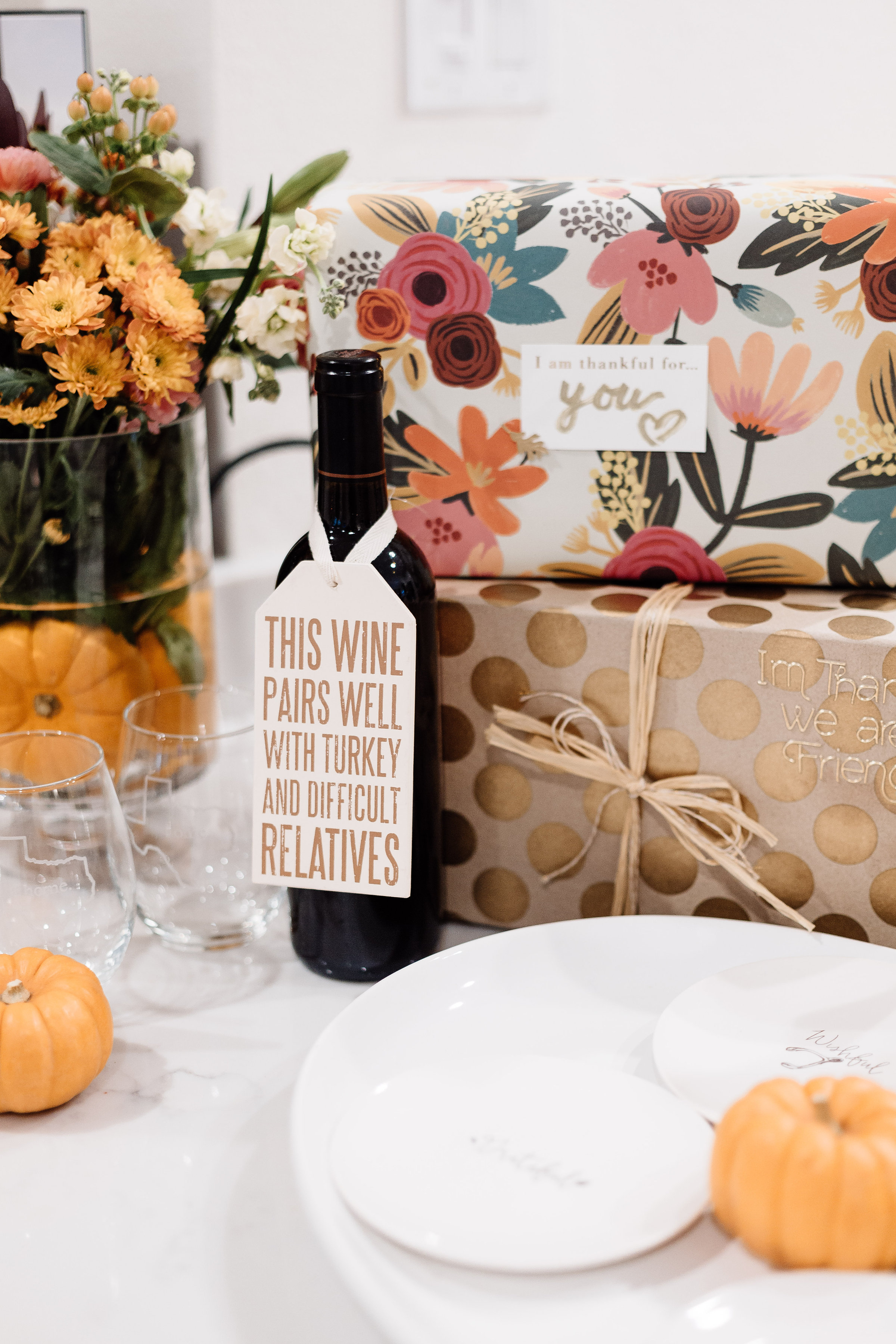 thanksgiving hostess gifts, holiday wine tags, fun wine tags